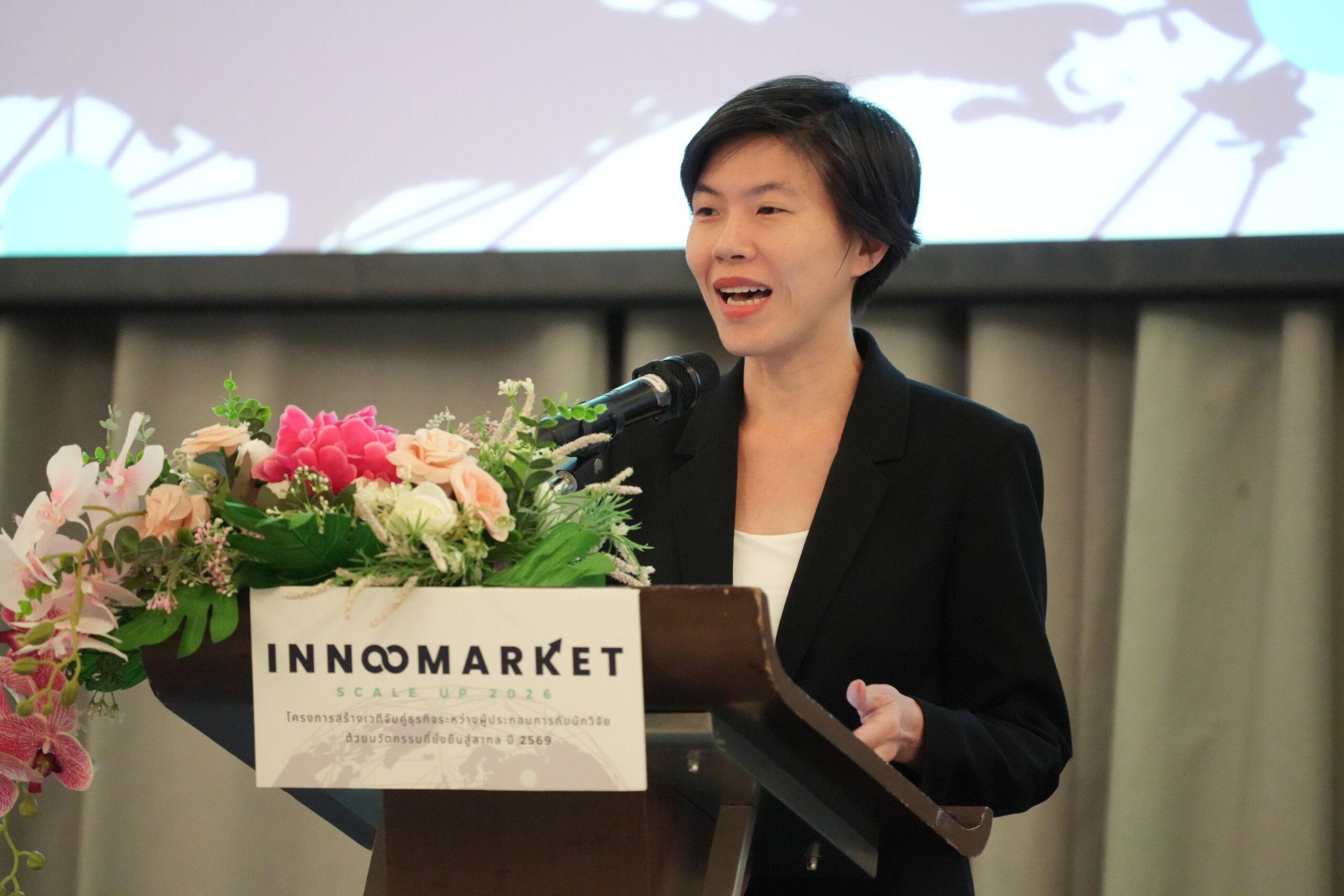 หน่วยบริหารจัดการทุนด้านการเพิ่มความสามารถการแข่งขัน (บพข.) สำนักงานเร่งรัดการวิจัยและนวัตกรรมเพื่อเพิ่มความสามารถการแข่งขันและการพัฒนาพื้นที่ หรือ รวพ. นำโดย รศ.ดร.กานดา บุญโสธรสถิตย์ ผู้อำนวยการ บพข. ร่วมกับ กรมส่งเสริมการค้าระหว่างประเทศ (DITP) เปิดโครงการ InnoMarket Scale Up 2026 : สร้างเวทีจับคู่ธุรกิจระหว่างผู้ประกอบการกับนักวิจัยด้วยนวัตกรรมที่ยั่งยืนสู่สากล ปี 2569” เพื่อส่งเสริมการจับคู่ธุรกิจระหว่างผู้ประกอบการและนักวิจัย พร้อมผลักดันงานวิจัยไทยให้มีมูลค่าทางเศรษฐกิจในระดับสากล โดยได้รับเกียรติจาก นายธีระพล โกวพัฒนกิจนักวิชาการพาณิชย์เชี่ยวชาญ DITP เป็นประธานในพิธีเปิด เมื่อวันที่ 16 มีนาคม 2569 ณ โรงแรมโนโวเทล กรุงเทพ สุขุมวิท 20